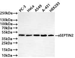 SEPTIN2 antibody; DIFF6 antibody; KIAA0158 antibody; NEDD5 antibody; SEPT2 antibody; Septin-2 antibody; Neural precursor cell expressed developmentally down-regulated protein 5 antibody; NEDD-5 antibody