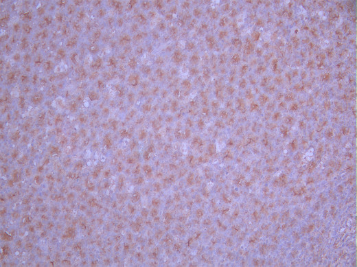IHC image of CSB-RA944215A0HU diluted at 1:100 and staining in paraffin-embedded human tonsil tissue performed on a Leica BondTM system. After dewaxing and hydration, antigen retrieval was mediated by high pressure in a citrate buffer (pH 6.0). Section was blocked with 10% normal goat serum 30min at RT. Then primary antibody (1% BSA) was incubated at 4°C overnight. The primary is detected by a Goat anti-rabbit polymer IgG labeled by HRP and visualized using 0.05% DAB.