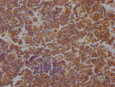 • IHC image of CSB-RA229700A0HU diluted at 1:100 and staining in paraffin-embedded human lung cancer performed on a Leica BondTM system. After dewaxing and hydration, antigen retrieval was mediated by high pressure in a citrate buffer (pH 6.0). Section was blocked with 10% normal goat serum 30min at RT. Then primary antibody (1% BSA) was incubated at 4℃ overnight. The primary is detected by a Goat anti-rabbit IgG polymer labeled by HRP and visualized using 0.05% DAB.