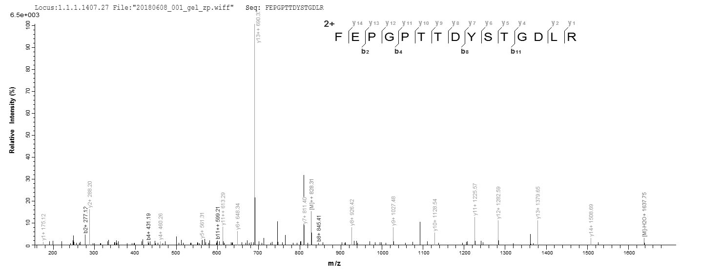 • Based on the SEQUEST from database of Yeast host and target protein, the LC-MS/MS Analysis result of CSB-YP356626BUA could indicate that this peptide derived from Yeast-expressed Bordetella pertussis (strain Tohama I / ATCC BAA-589 / NCTC 13251) fim2.