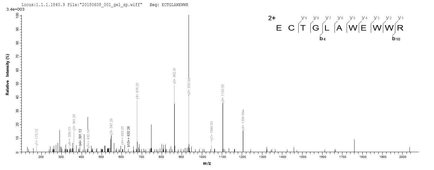 Based on the SEQUEST from database of E.coli host and target protein, the LC-MS/MS Analysis result of CSB-EP314820CMB could indicate that this peptide derived from E.coli-expressed Clostridium perfringens (strain 13 / Type A) pfo.