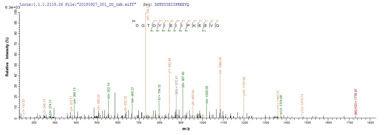 Based on the SEQUEST from database of E.coli host and target protein, the LC-MS/MS Analysis result of CSB-EP007929HU could indicate that this peptide derived from E.coli-expressed Homo sapiens (Human) F5.