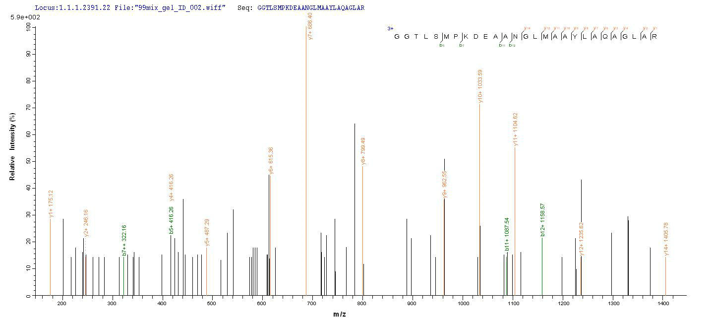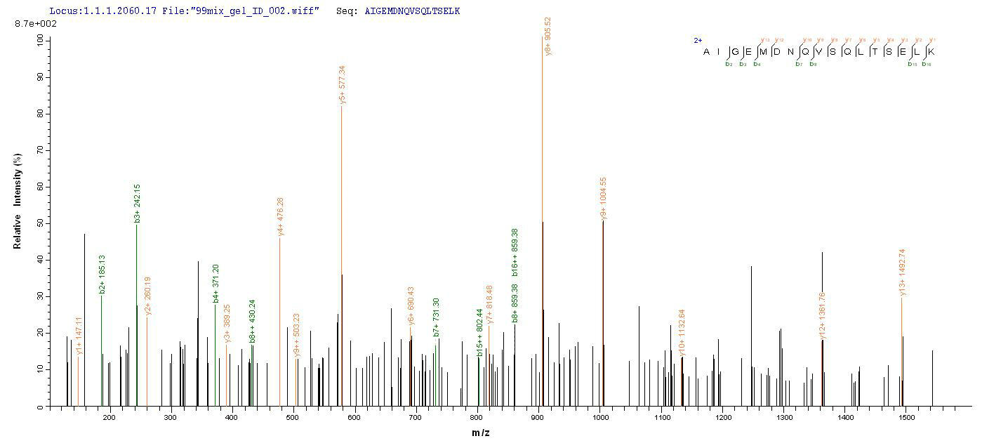 • Based on the SEQUEST from database of Mammalian Cell host and target protein, the LC-MS/MS Analysis result of CSB-MP861154HU could indicate that this peptide derived from Mammalian Cell-expressed Homo sapiens (Human) COLEC11.