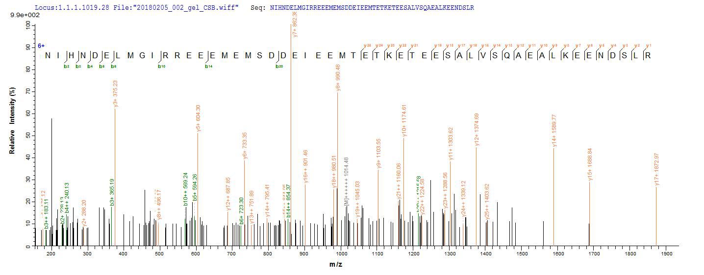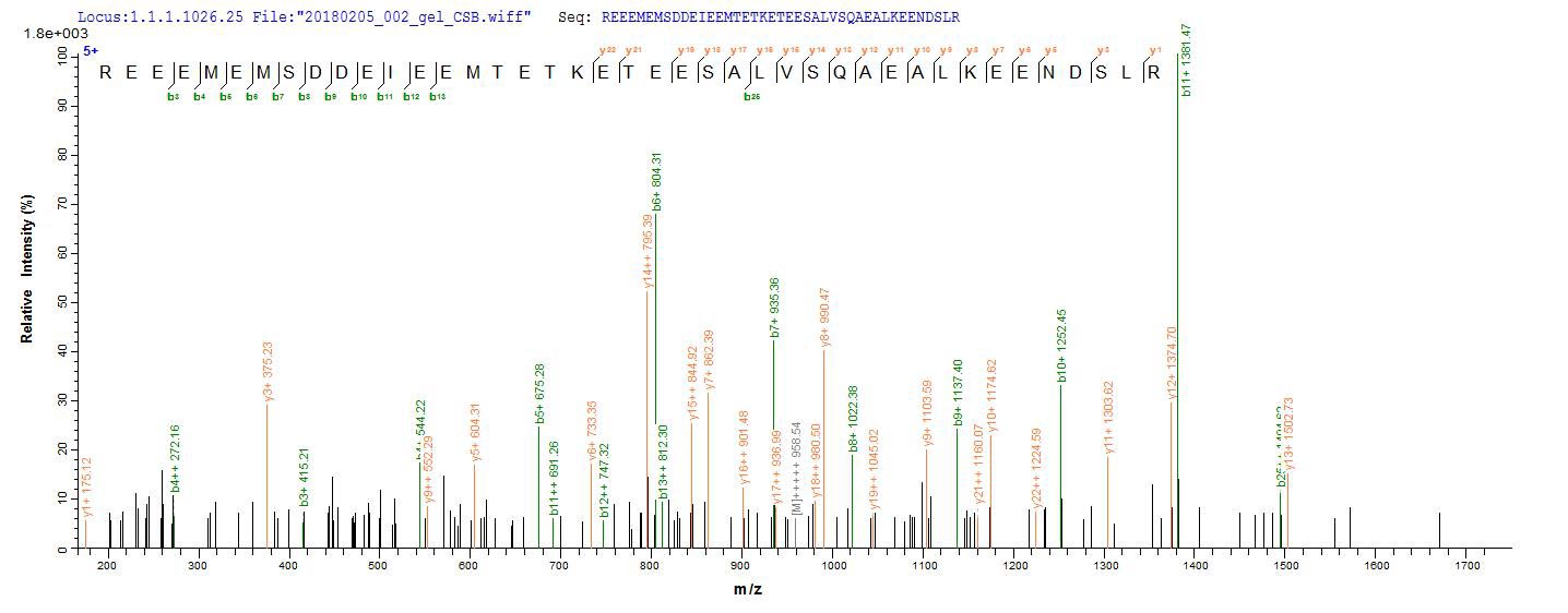 • Based on the SEQUEST from database of E.coli host and target protein, the LC-MS/MS Analysis result of CSB-EP007677HU1 could indicate that this peptide derived from E.coli-expressed Homo sapiens (Human) ENOX2.