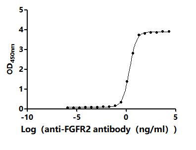 生物活性:Measured by its binding ability in a functional ELISA. Immobilized Human FGFR2 at 2 μg/mL can bind Anti-FGFR2 recombinant antibody (CSB-RA008645MA2HU). The EC50 is 2.051-2.322 ng/mL.