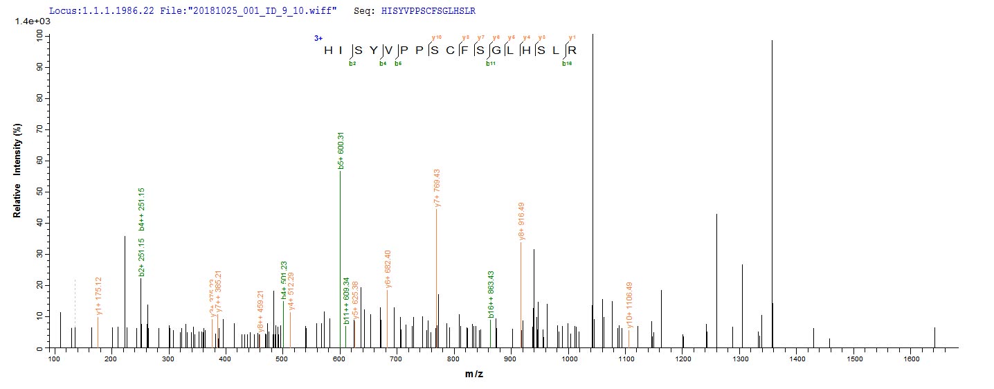 Based on the SEQUEST from database of Yeast host and target protein, the LC-MS/MS Analysis result of CSB-YP012906HU could indicate that this peptide derived from Yeast-expressed Homo sapiens (Human) LGR5.