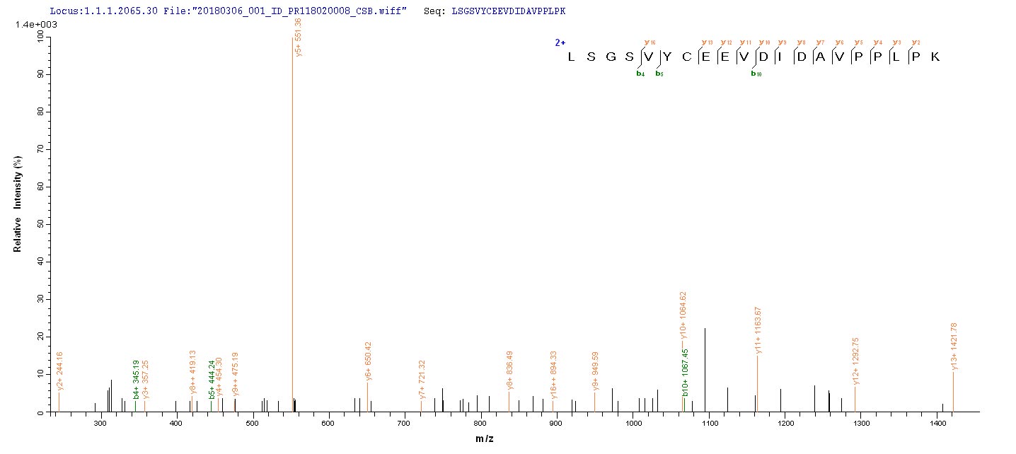 • Based on the SEQUEST from database of Yeast host and target protein, the LC-MS/MS Analysis result of CSB-YP016314HU could indicate that this peptide derived from Yeast-expressed Homo sapiens (Human) OGN.