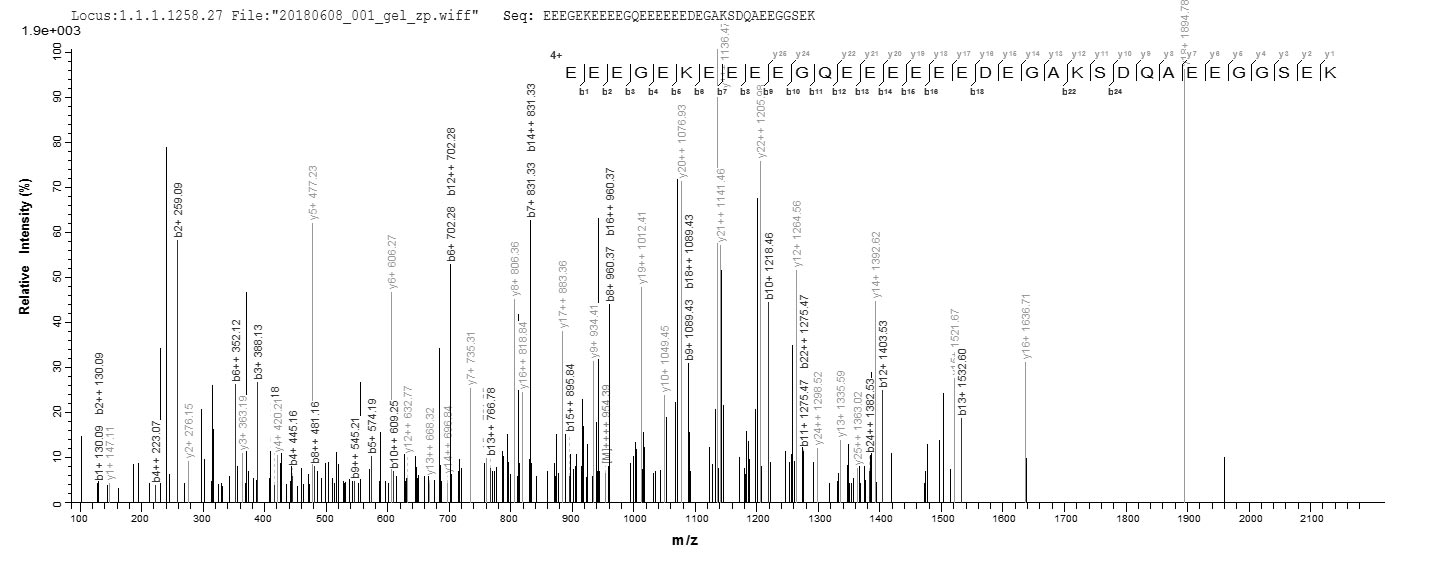 氨基酸序列EKKEAAEEKEEEPEAEEEEVAAKKSPVKATAPEVKEEEGEKEEEEGQEEEEEEDEGAKSDQAEEGGSEKEGSSEKEEGEQEEGETEAEAEGEEAEAKEEKKVEEKSEEVATKEELVADAKVEKPEKAKSPVPKSPVEEKGKSPVPKSPVEEKGKSPVPKSPVEEKGKSPVPKSPVEEKGKSPVSKSPVEEKAKSPVPKSPVEEAKSKAEVGKGEQKEEEEKEVKEAPKEEKVEKKEEKPKDVPEKKKAESPVKE