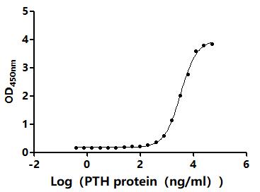 Measured by its binding ability in a functional ELISA.Immobilized Human PTH1R(CSB-MP018988HU) at 5 μg/mL can bind Human PTH. The EC50 is 3.156-3.564 μg/mL.
