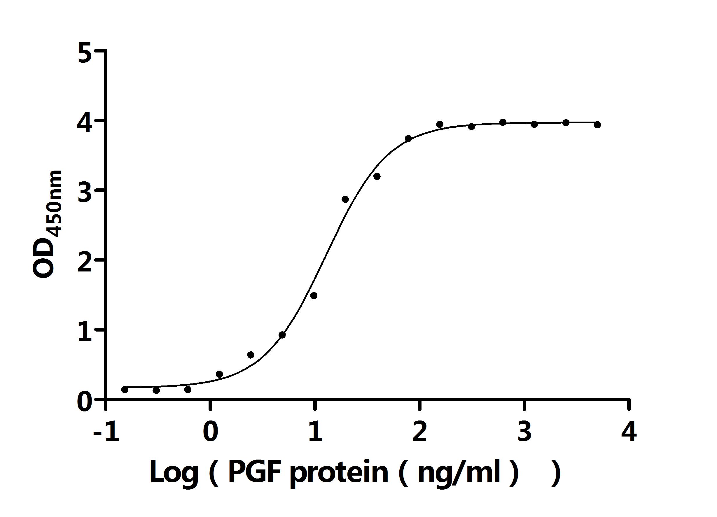 Measured by its binding ability in a functional ELISA. Immobilized Human FLT1(CSB-MP008732HU) protein at 2 μg/ml can bind Human PGF protein. The EC50 is 10.72-15.25 ng/mL. Biological Activity Assay