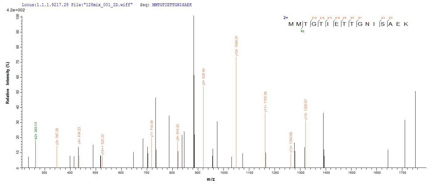 Based on the SEQUEST from database of E.coli host and target protein, the LC-MS/MS Analysis result of CSB-EP675446HU could indicate that this peptide derived from E.coli-expressed Homo sapiens (Human) TIGIT.