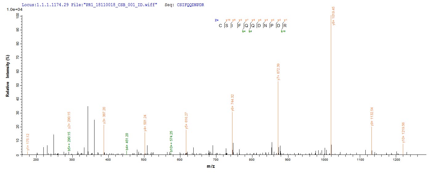 • Based on the SEQUEST from database of Yeast host and target protein, the LC-MS/MS Analysis result of CSB-YP004844MO could indicate that this peptide derived from Yeast-expressed Mus musculus (Mouse) Ccr5.