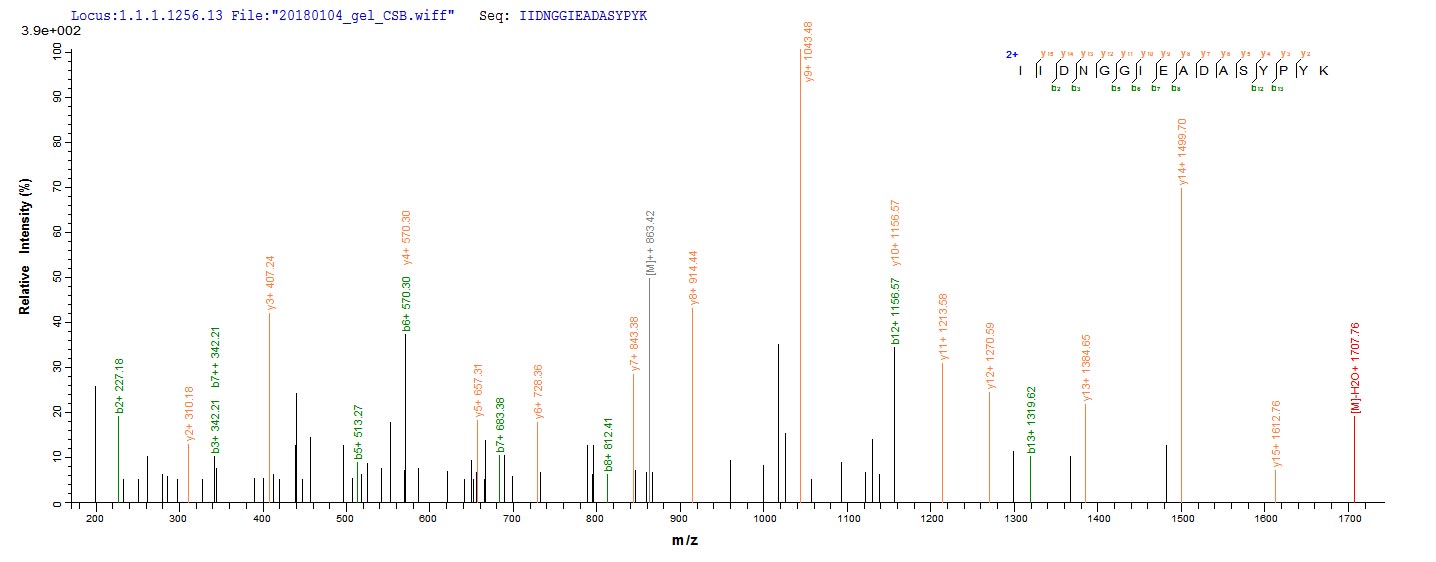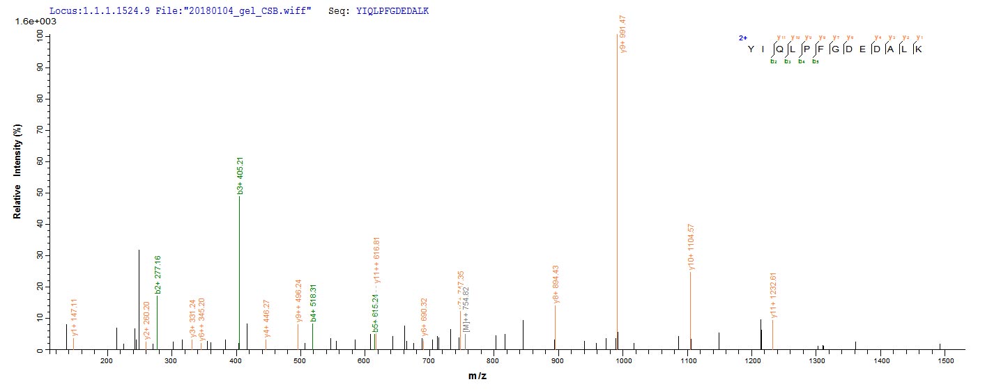 • Based on the SEQUEST from database of E.coli host and target protein, the LC-MS/MS Analysis result of CSB-EP006204MO could indicate that this peptide derived from E.coli-expressed Mus musculus (Mouse) ctss.