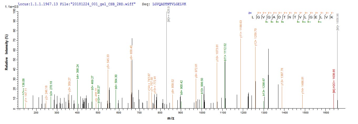Based on the SEQUEST from database of E.coli host and target protein, the LC-MS/MS Analysis result of CSB-EP704737MO could indicate that this peptide derived from E.coli-expressed Mus musculus (Mouse) Zc3h12a.