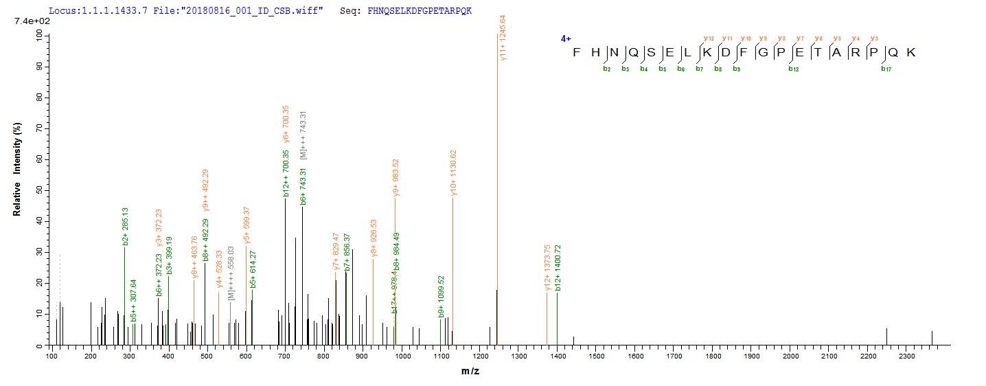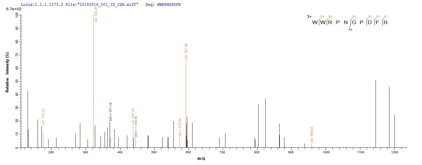 Based on the SEQUEST from database of E.coli host and target protein, the LC-MS/MS Analysis result of CSB-EP859165RA could indicate that this peptide derived from E.coli-expressed Rattus norvegicus (Rat) Sost.