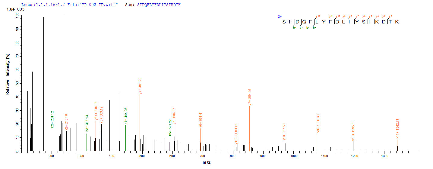 Based on the SEQUEST from database of E.coli host and target protein, the LC-MS/MS Analysis result of CSB-EP360703FKZ could indicate that this peptide derived from E.coli-expressed Staphylococcus aureus entB.