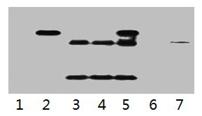 Lane 2: transfected 293 cell lysate with HA-tag fusion protein