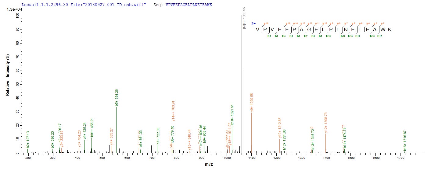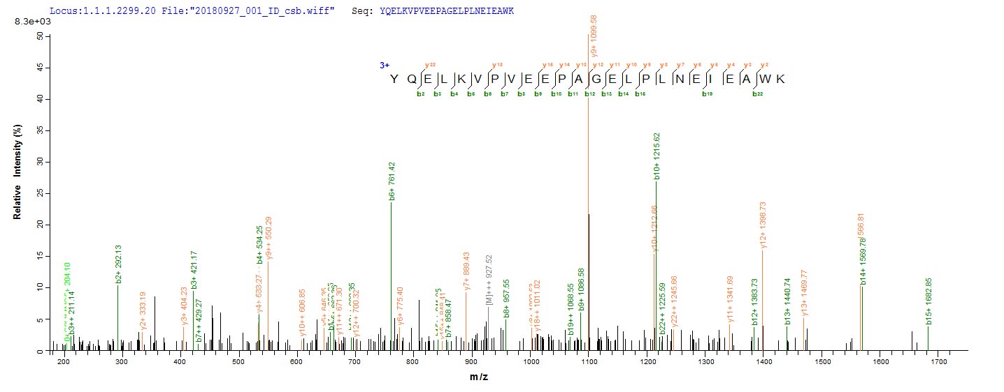 Based on the SEQUEST from database of E.coli host and target protein, the LC-MS/MS Analysis result of CSB-CF018146MO could indicate that this peptide derived from E.coli-expressed Recombinant Mouse Phospholipase D3(Pld3) Pld3.