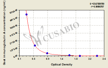 通過線性范圍來計算出實際的檢測樣本值,定量試劑盒標準曲線的相關系數R大于0.99。以CSB-E07270h(人脂聯素(ADP)ELISA Kit)為例的標準曲線。