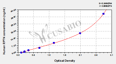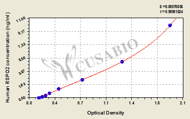 通過線性范圍來計算出實際的檢測樣本值,定量試劑盒標準曲線的相關系數(shù)R大于0.99。以CSB-E07270h(人脂聯(lián)素(ADP)ELISA Kit)為例的標準曲線。