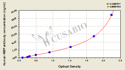 通過線性范圍來計算出實際的檢測樣本值,定量試劑盒標準曲線的相關系數R大于0.99。以CSB-E07270h(人脂聯素(ADP)ELISA Kit)為例的標準曲線。