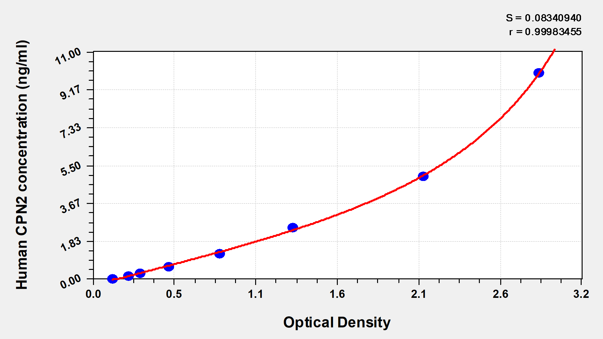 通過線性范圍來計算出實際的檢測樣本值,定量試劑盒標準曲線的相關系數R大于0.99。以CSB-E07270h(人脂聯素(ADP)ELISA Kit)為例的標準曲線。
