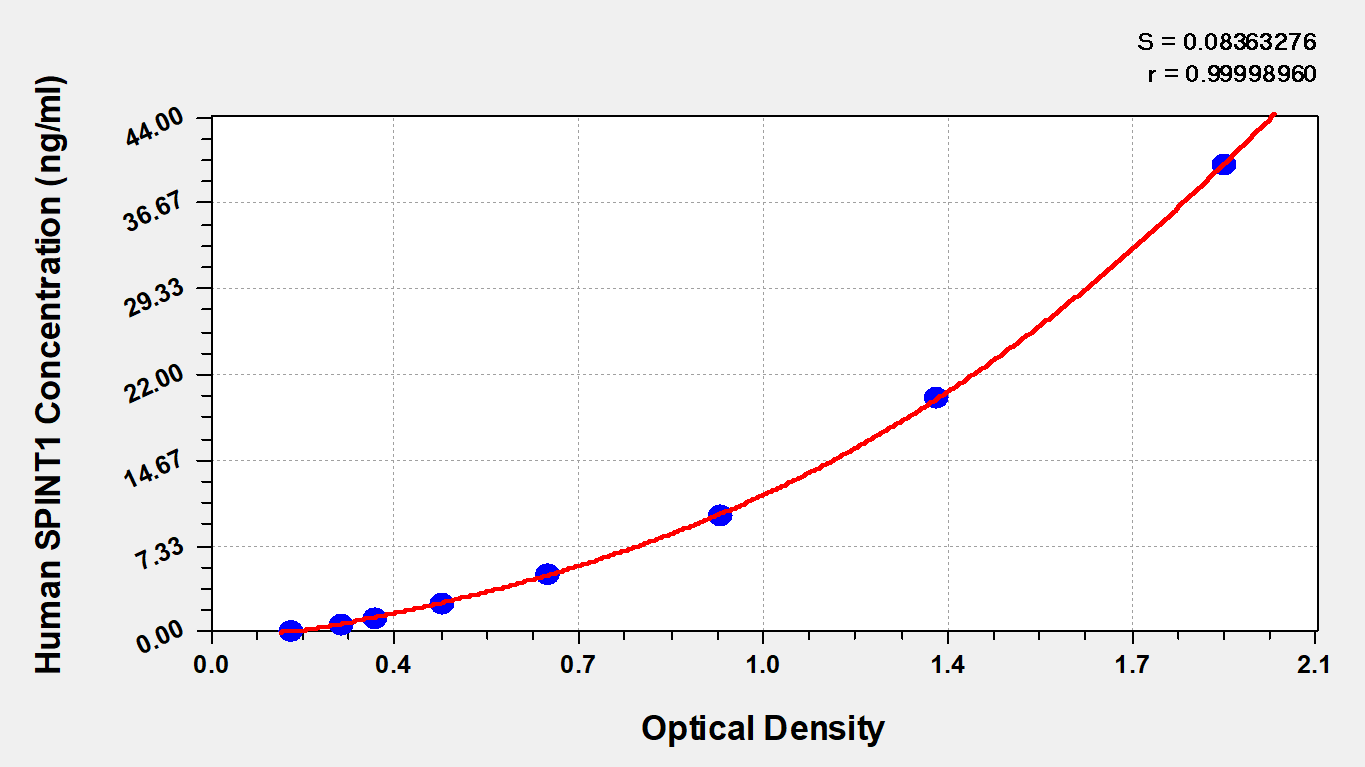 通過線性范圍來計算出實際的檢測樣本值,定量試劑盒標準曲線的相關系數R大于0.99。以CSB-E07270h(人脂聯素(ADP)ELISA Kit)為例的標準曲線。