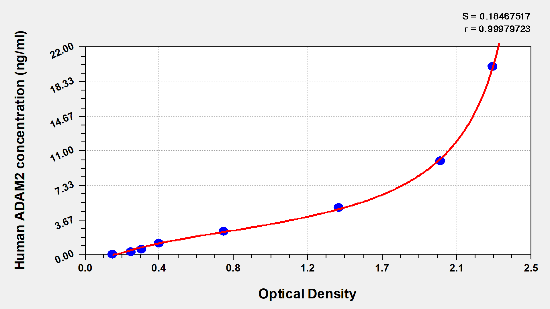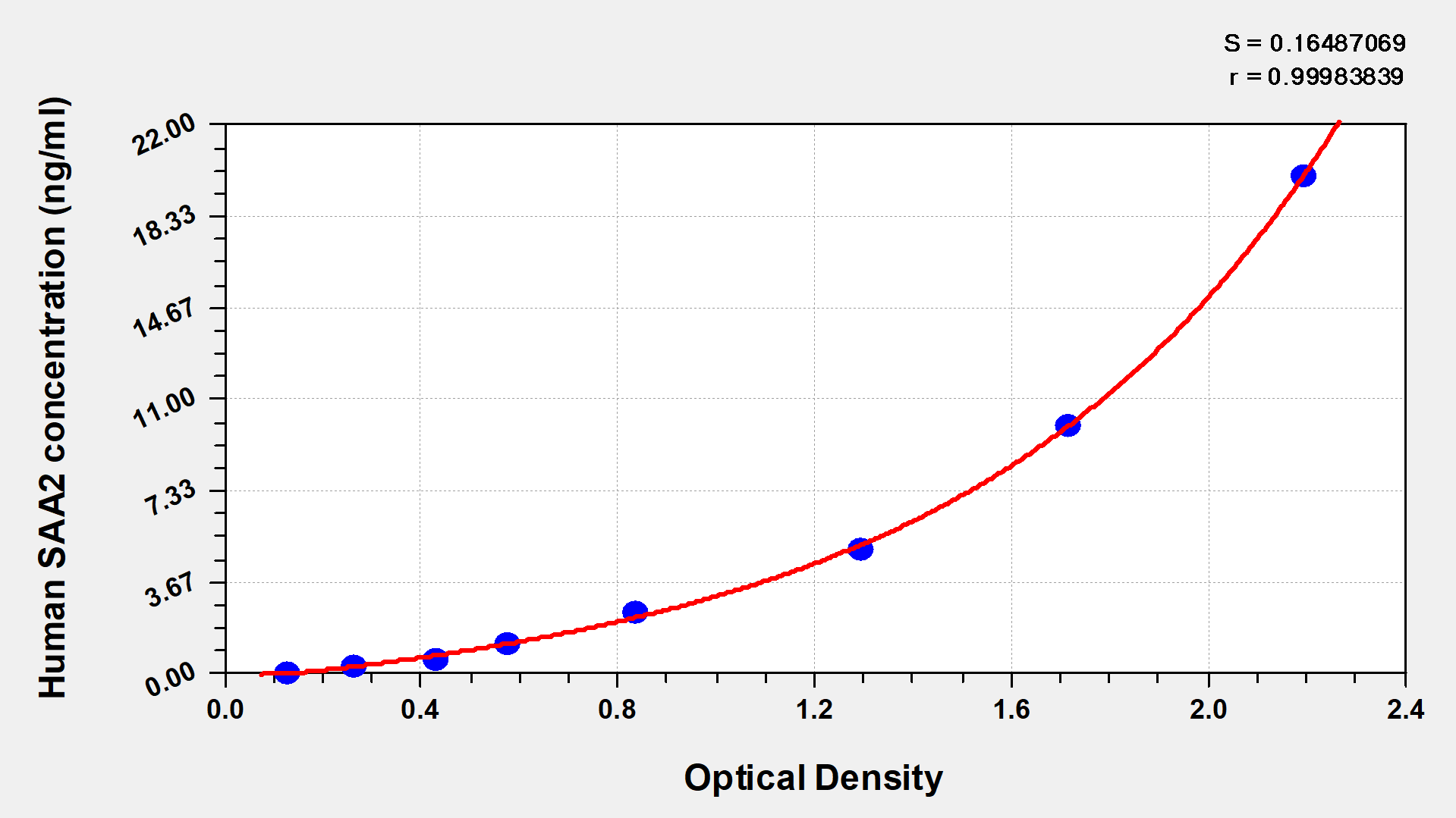 通過線性范圍來計(jì)算出實(shí)際的檢測樣本值,定量試劑盒標(biāo)準(zhǔn)曲線的相關(guān)系數(shù)R大于0.99。以CSB-E07270h(人脂聯(lián)素(ADP)ELISA Kit)為例的標(biāo)準(zhǔn)曲線。