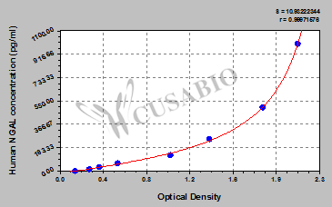 通過(guò)線性范圍來(lái)計(jì)算出實(shí)際的檢測(cè)樣本值,定量試劑盒標(biāo)準(zhǔn)曲線的相關(guān)系數(shù)R大于0.99。以CSB-E07270h(人脂聯(lián)素(ADP)ELISA Kit)為例的標(biāo)準(zhǔn)曲線。