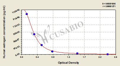 通過線性范圍來計算出實際的檢測樣本值,定量試劑盒標準曲線的相關系數R大于0.99。以CSB-E07270h(人脂聯素(ADP)ELISA Kit)為例的標準曲線。