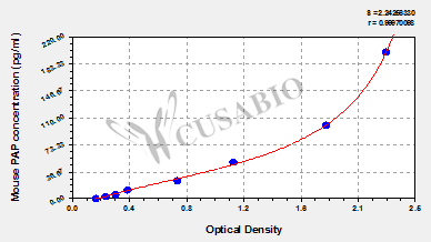通過線性范圍來計算出實際的檢測樣本值,定量試劑盒標(biāo)準(zhǔn)曲線的相關(guān)系數(shù)R大于0.99。以CSB-E07270h(人脂聯(lián)素(ADP)ELISA Kit)為例的標(biāo)準(zhǔn)曲線。