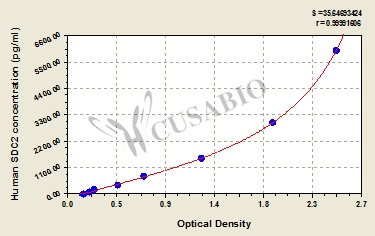 通過(guò)線性范圍來(lái)計(jì)算出實(shí)際的檢測(cè)樣本值,定量試劑盒標(biāo)準(zhǔn)曲線的相關(guān)系數(shù)R大于0.99。以CSB-E07270h(人脂聯(lián)素(ADP)ELISA Kit)為例的標(biāo)準(zhǔn)曲線。