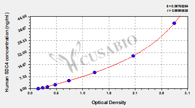通過線性范圍來計(jì)算出實(shí)際的檢測樣本值,定量試劑盒標(biāo)準(zhǔn)曲線的相關(guān)系數(shù)R大于0.99。以CSB-E07270h(人脂聯(lián)素(ADP)ELISA Kit)為例的標(biāo)準(zhǔn)曲線。
