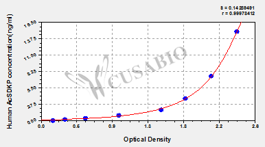 通過線性范圍來計算出實際的檢測樣本值,定量試劑盒標準曲線的相關系數R大于0.99。以CSB-E07270h(人脂聯素(ADP)ELISA Kit)為例的標準曲線。