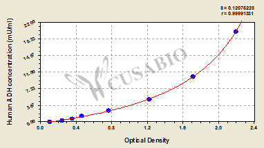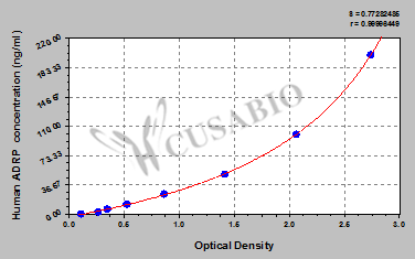 通過線性范圍來計(jì)算出實(shí)際的檢測(cè)樣本值,定量試劑盒標(biāo)準(zhǔn)曲線的相關(guān)系數(shù)R大于0.99。以CSB-E07270h(人脂聯(lián)素(ADP)ELISA Kit)為例的標(biāo)準(zhǔn)曲線。
