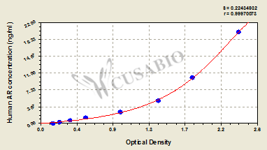 通過線性范圍來計(jì)算出實(shí)際的檢測樣本值,定量試劑盒標(biāo)準(zhǔn)曲線的相關(guān)系數(shù)R大于0.99。以CSB-E07270h(人脂聯(lián)素(ADP)ELISA Kit)為例的標(biāo)準(zhǔn)曲線。