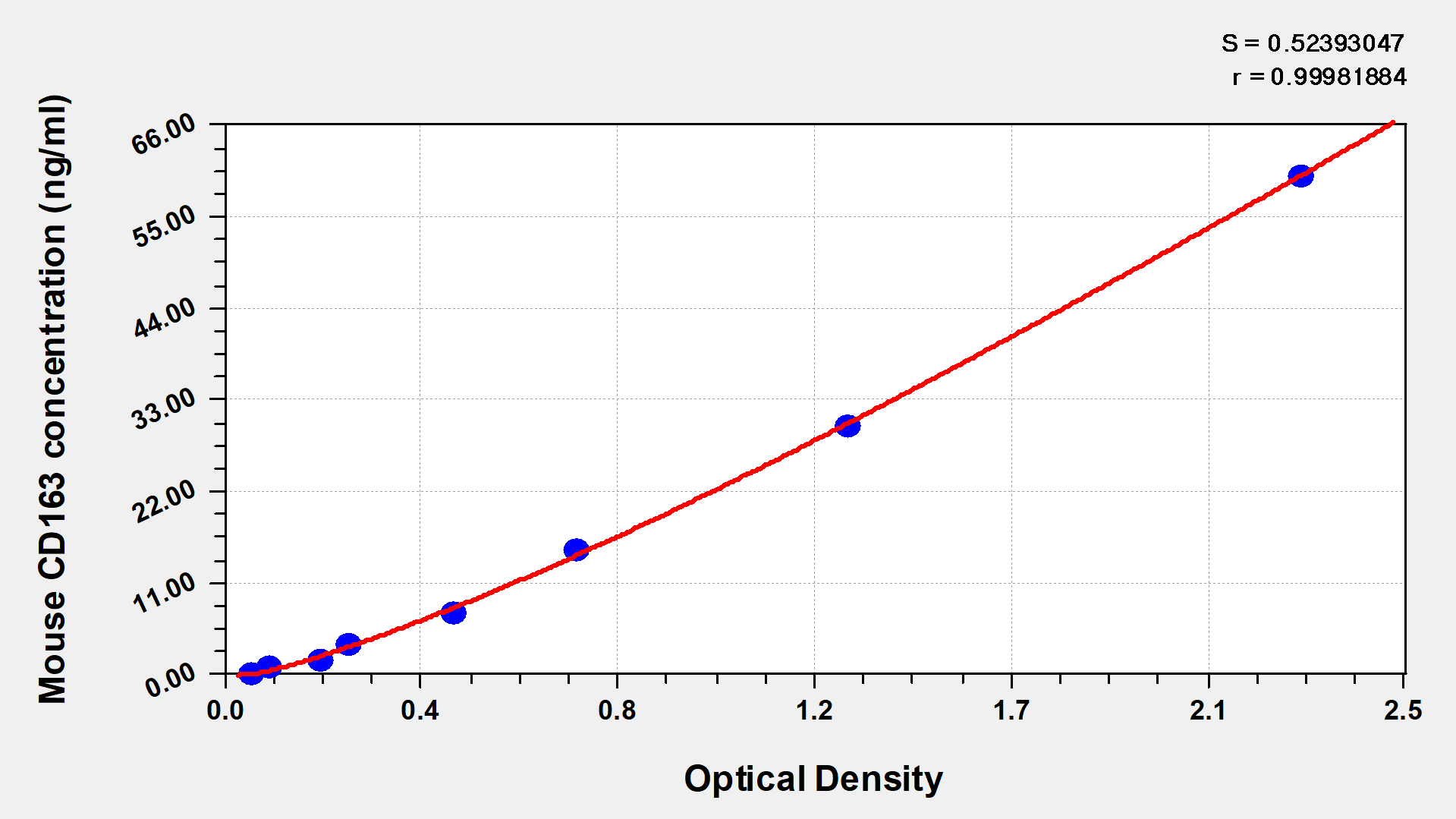 最低檢測限是靈敏度的測試指標。由使用的抗體效價等決定的,在研發(fā)過程中,一般會優(yōu)化保證高靈敏度、低背景的檢測結(jié)果從而大大提高試劑盒的靈敏度。檢測限越低,靈敏度越高。通過將零標準重復獲得的平均 O.D. 加上3個標準偏差來確定靈敏度。