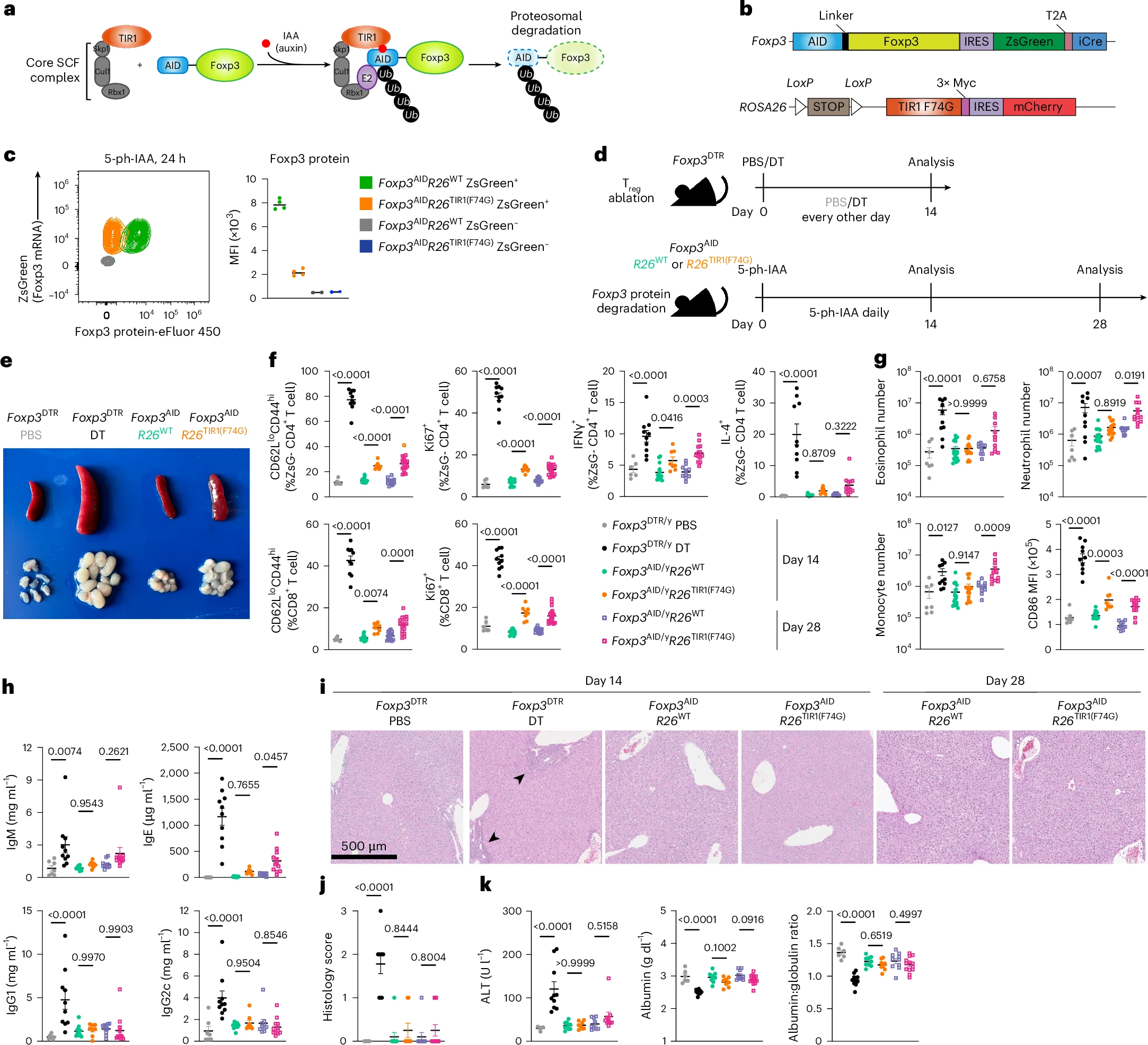 2025年10月8日,斯隆凱特琳癌癥中心Alexander Rudensky博士團隊與耶魯大學胡瑋博士團隊在《Nature Immunology》發表研究,揭示了Foxp3在不同組織和發育階段對調節性T細胞(Treg)的調控作用。研究構建了一個可誘導FOXP3蛋白降解的小鼠模型,發現成年小鼠中FOXP3短暫缺失幾乎不引發自身免疫反應,表明成熟Treg的維持不依賴FOXP3的持續存在。然而,在胸腺Treg發育階段,FOXP3的存在至關重要。此外,在炎癥或腫瘤微環境等應激條件下,成體Treg重新依賴FOXP3維持功能。該研究為理解Treg的發育和功能機制提供了新見解,并為癌癥免疫治療提供了新思路。05、靶點:IL4